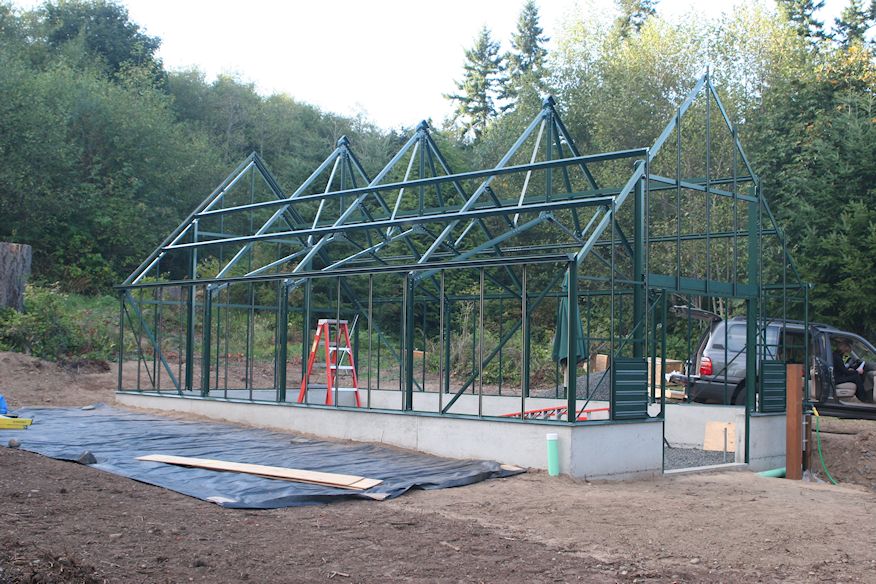 The greenhouse kit we purchased went together in stages, which are documented in the drawings and instructions that accompanied the kit. Unfortunately, some of the instructions were not applicable to our kit, as we ordered a fairly uncommon collection of features. And, a