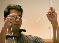 This year, one of the prizes was given to Dorian Raymer of the Ocean Observatories Initiative at Scripps Institution of Oceanography, USA, and Douglas Smith of the University of California, San Diego, USA, for proving mathematically that heaps of string or hair or almost anything else will inevitably tangle themselves up in knots. They took lengths of string and shook them up in specifically-sized boxes at specific vibration levels and sure enough, knots “spontaneously” formed. In fact, they even plotted the probability of knots against the length of string and got this nifty result: