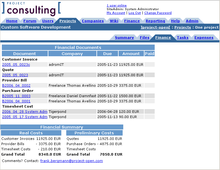 Project Open is a web-based “Enterprise Project Management” software for project-based organizations with 2-200 users. Project Open integrates areas such as CRM, sales, project planning, project tracking, collaboration, timesheet, invoicing and payments.