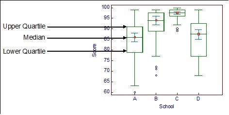 This is also illustrated in the box plot for the aggregate score of all Schools where the median for School C is uniquely different from the 3 other Schools.