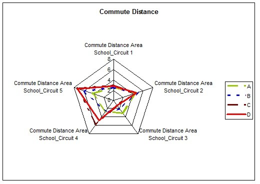 Figure 5: Spider Chart of Commute Distance for all Schools