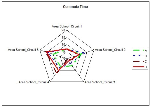 Figure 4: Spider Chart of Commute Distance for all Schools