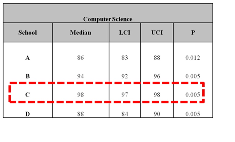 Table 1: Median Scores of Students in Computer Science at all Schools